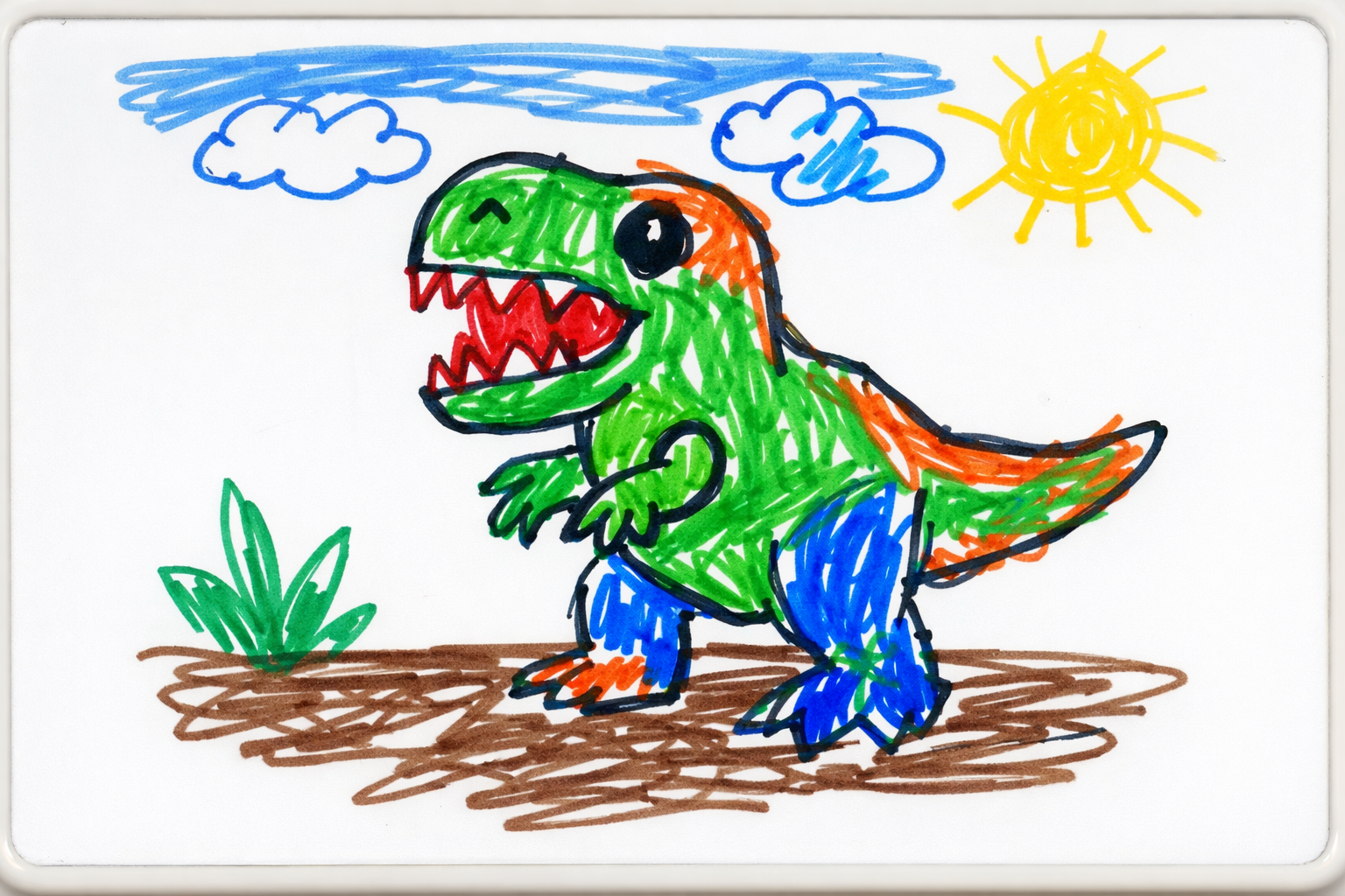 Grab the included washable markers and go wild. When done, stick it on the fridge to show it off!
